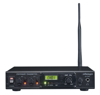 OKAYO Stasjonær sender 863.854 MHz benyttes i lokaler der du har en fast lydkilde med lyd du vil overføre trådløst til lommemottakere med øretelefon eller halsslynge.